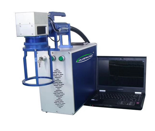 便攜式光纖激光打標機又名手持式光纖激光打標機。為解決了現(xiàn)有大型零部件激光標記的難題而設計。整機與電腦主機箱大小,小巧方便,可以手持進行作業(yè),可在任何方向對大型機械零部件進行激光打標。手持式便攜式激光打標機都是需要電腦控制軟件的,可以標刻數(shù)字,字母,漢字和圖標二維碼等。手持式打標機小巧靈活,打標頭就像一臺吹風機大小,手握打標頭進行標記作業(yè)十分方便,不受空間限制。該機“麻雀雖小,五臟俱全”,具備光纖激光打標機的高速度、高質量、高性價比。手持手柄配備加長罩,輕松提拿,移動打標,不受工作臺面限制,有效解決大型零部件激光標記難題。